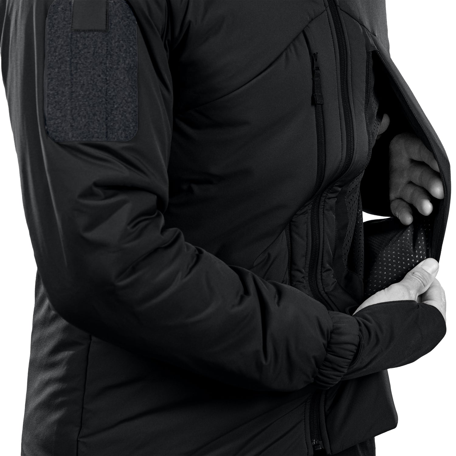 Den intelligente konstruktion gør det muligt at tilpasse jakken efter dit lag-på-lag system: brug den alene i milde vinterforhold eller under en hardshell-jakke i ekstrem kulde. Hætte og håndledsvarmere kan nemt afmonteres efter behov, og den anatomiske pasform sikrer fuld bevægelsesfrihed uden unødigt volumen.