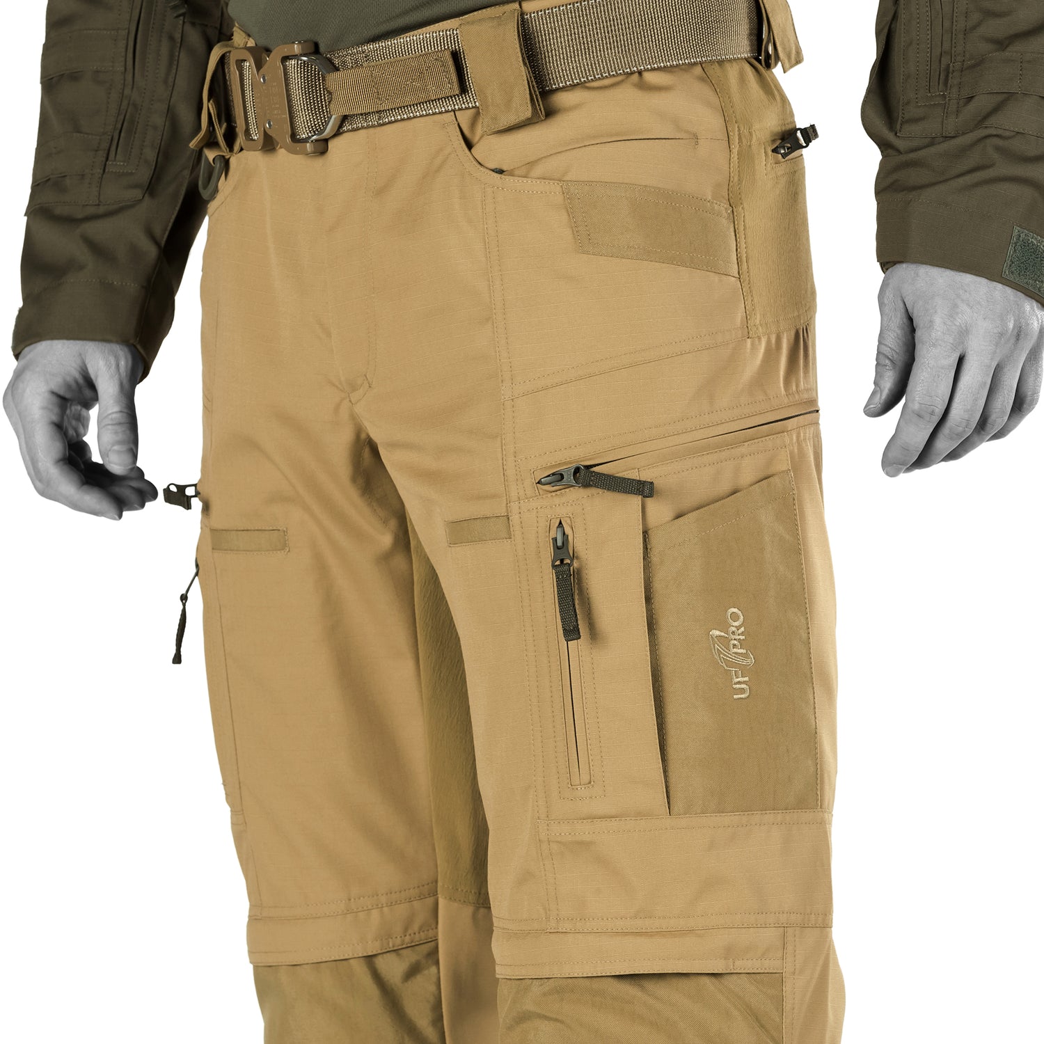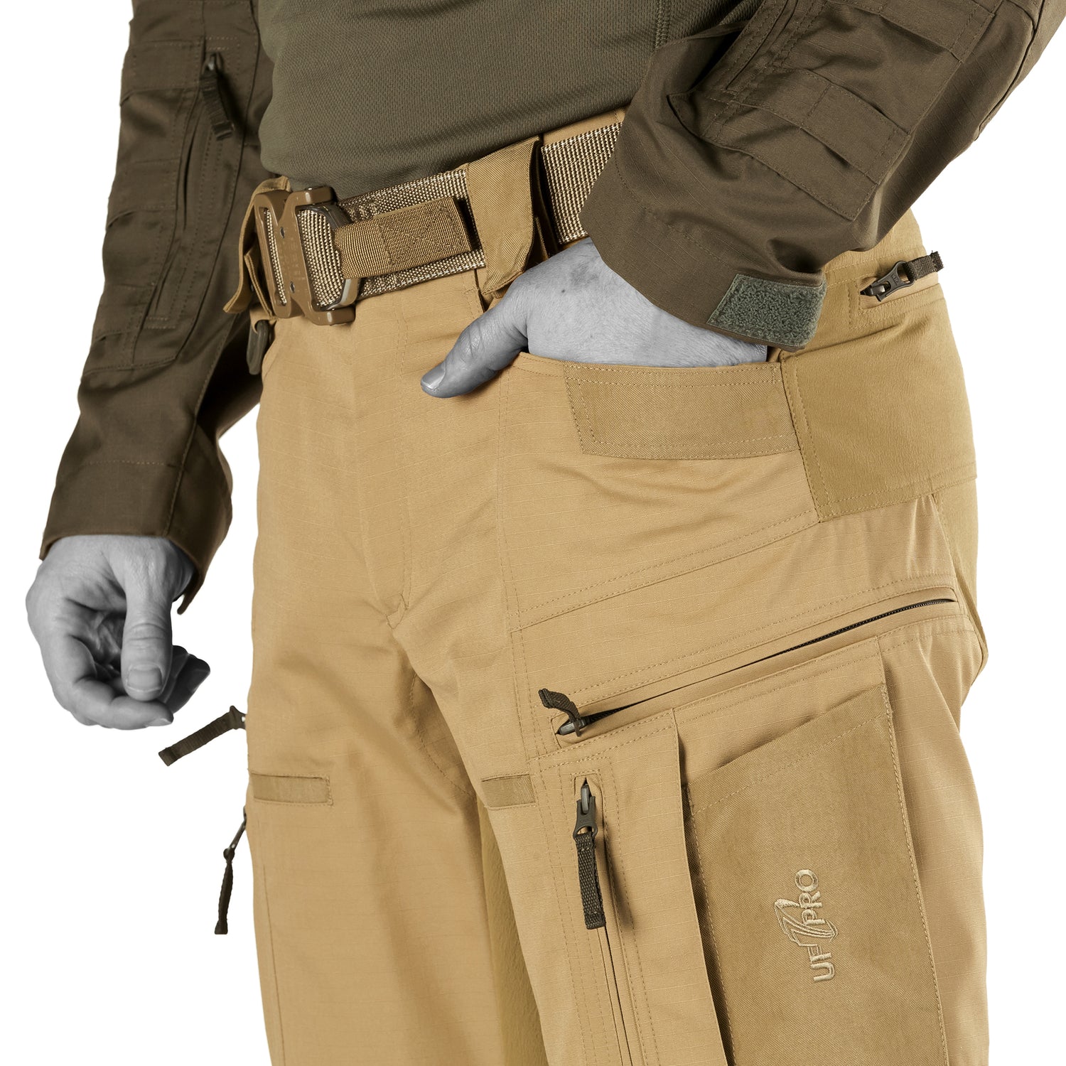 En ekstremt holdbar konstruktion, den uovertrufne komfort, den funktionelle lommeopsætning og den pålidelige knæbeskyttelse gør UF PRO P-40 All-Terrain til et par uniformsbukser, som giver dig en afgørende fordel i ethvert terræn eller ved enhver aktivitet. Store Schoeller®-dynamic strækindsatser i sædeområdet og en speciel anatomisk pasform går hånd i hånd, så du kan nyde en enestående bevægelsesfrihed. Åndbart, let ripstop-materiale og ventilationslynlåse ved knæene sikrer, at du føler dig godt tilpas hele dagen eller natten. P-40 All-Terrain Gen.2 uniformsbukser har et snit, der holder knæbeskyttelsestilbehøret på plads og gør det næsten umærkeligt. I stedet vil du bemærke, hvor godt knæbeskytterne fungerer - de er altid der, når du knæler, og de er altid klar til at give dig den rette beskyttelse. Det bedste er, at der ikke er behov for stropper eller justering for at holde dem på plads. De er fuldt kompatible med de separat tilgængelige UF PRO 3D Tactical knæpuder. Disse puder fås i to versioner: CUSHION for ekstra polstring ved langvarig knæling og IMPACT for beskyttelse mod voldelige stød på skumbasis mod pludselige, hårde slag. P-40 All-Terrain Gen.2 uniformsbukser har ni rummelige, funktionsrige lommer, hvor du kan opbevare en masse personligt udstyr og kompakte værktøjer. De store sidelommer indeholder indvendige rum lavet af schoeller®-dynamic stof. Så du kan opbevare ekstra udstyr, der bliver på plads (designet og konstruktionen af de indvendige rum er lavet, så genstandene indeni ikke glider rundt, når du bevæger dig, hvilket betyder, at bukserne yder bedre og gør dit arbejde mere behageligt, så du ikke behøver at bekymre dig om, at vigtige ting falder ud). P-40 All-Terrain uniformsbukser er lavet af meget åndbart PolyCotton ripstop-materiale. Sved eller let regn tørrer meget hurtigt i dette stof. Ved minusgrader kan P-40 All-Terrain uniformsbukser nemt omdannes til termobukser. De er kompatible med det vindtætte UF PRO WINDSTOPPER® indvendige for.